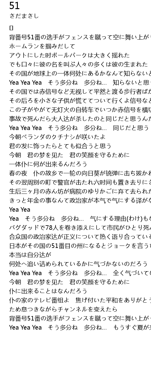 | Yea Yea Yea そう多分ね 多分ね… 知らないと思う | |