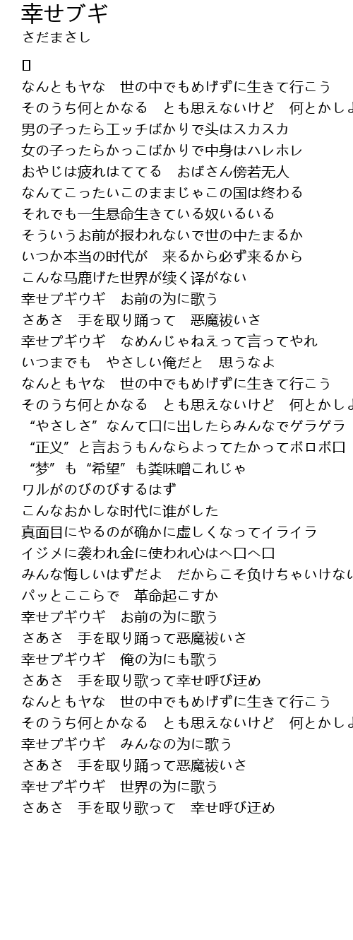 | 幸せプギウギ なめんじゃねえって言ってやれ | |
