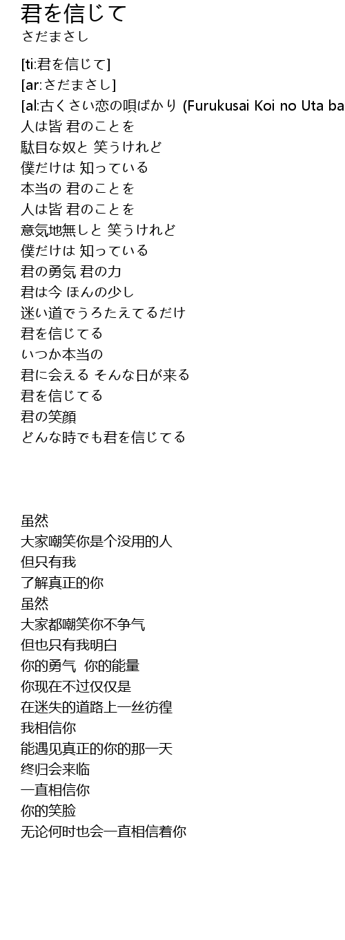 | [03:04.56] | 无论何时也会一直相信着你 |