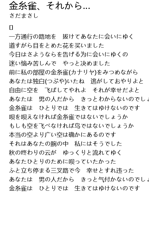 | 金糸雀は ひとりでは 生きてはゆけないのです | |