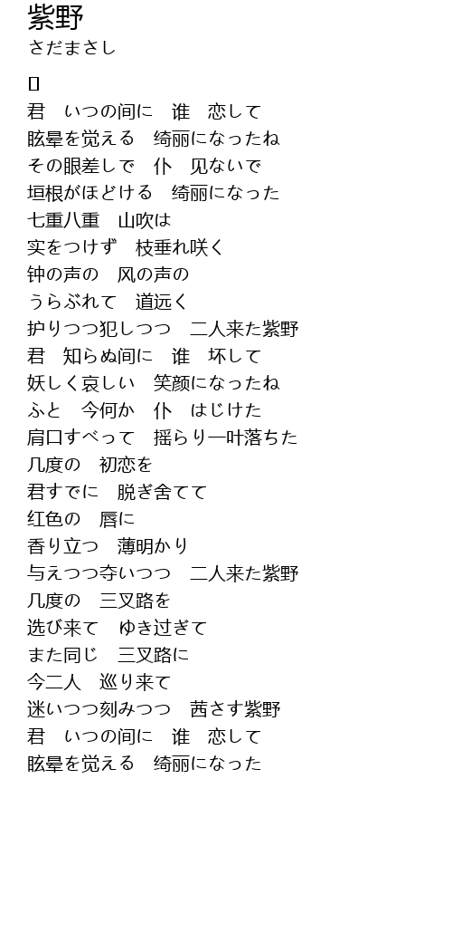 | 护りつつ犯しつつ 二人来た紫野 | |