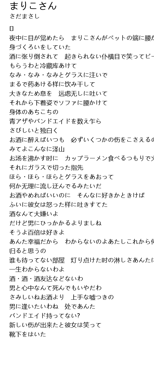 | お酒に醉えばいつも 必ずいくつかの伤をこさえるのよ | |