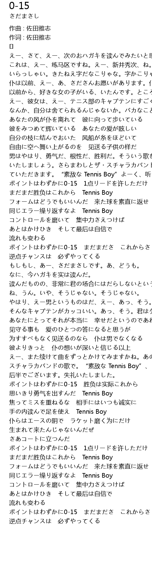 | スチャラカバンドの歌で。“素敌な Tennis Boy”、 | |