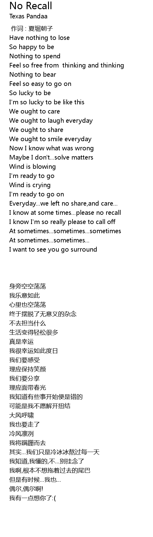 | 歌曲 | No Recall |