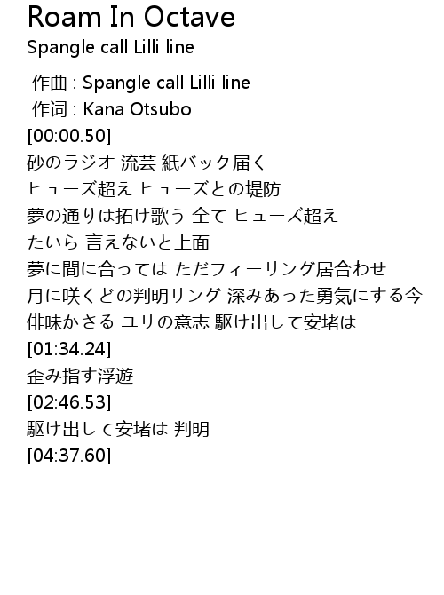 | [00:00.00] | zuo qu : Spangle call Lilli line |