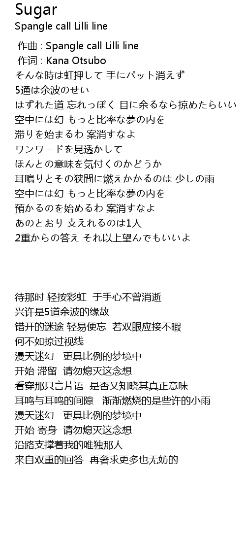 | [00:00.00] | zuò qǔ : Spangle call Lilli line |