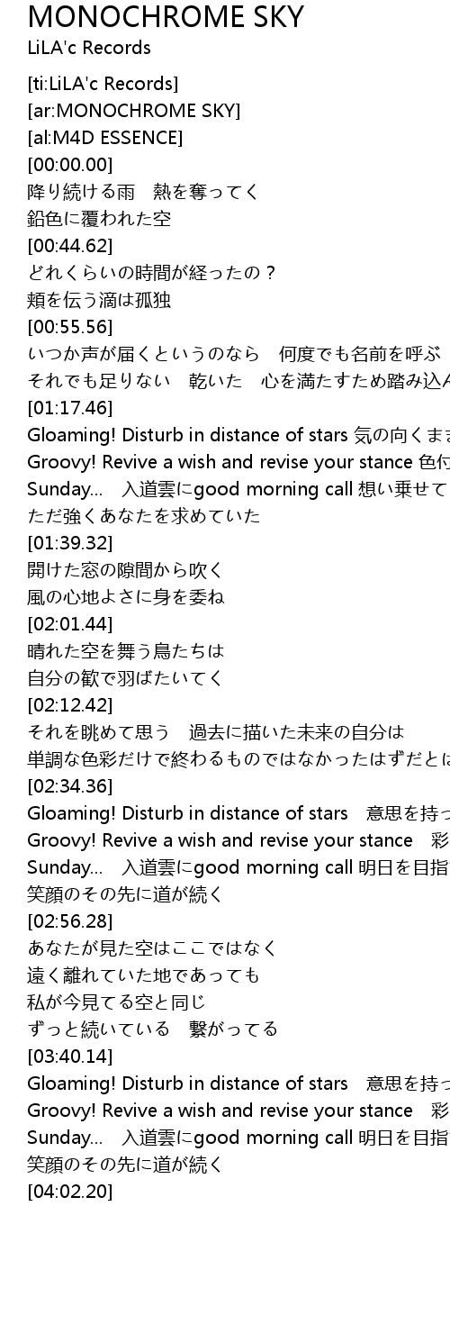 | [01:17.47] | Gloaming! Disturb in distance of stars 気の向くまま |