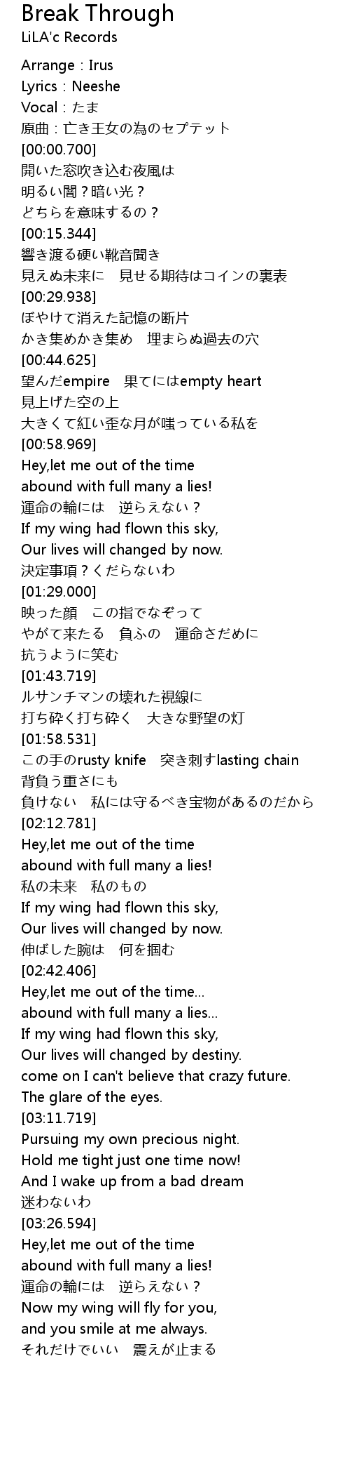 | [01:58.844] | この手のrusty knife 突き刺すlasting chain |