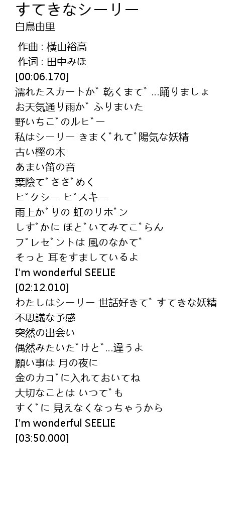 | [02:39.810] | わたしはシーリー 世話好きで すてきな妖精 |