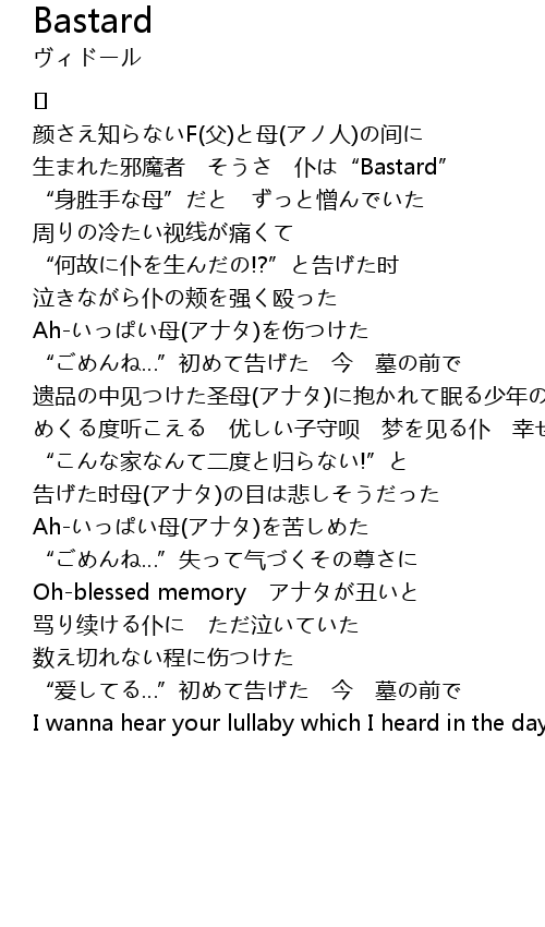| 生まれた邪魔者 そうさ 仆は“Bastard” | |