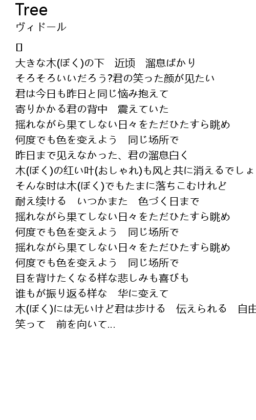 | 大きな木(ぼく)の下 近顷 溜息ばかり | |