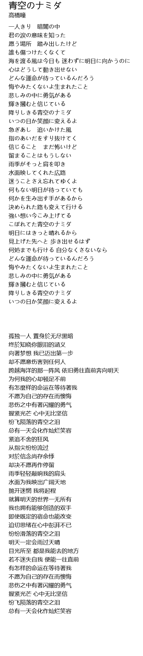 | [03:47.62] | 降りしきる青空のナミダ |
