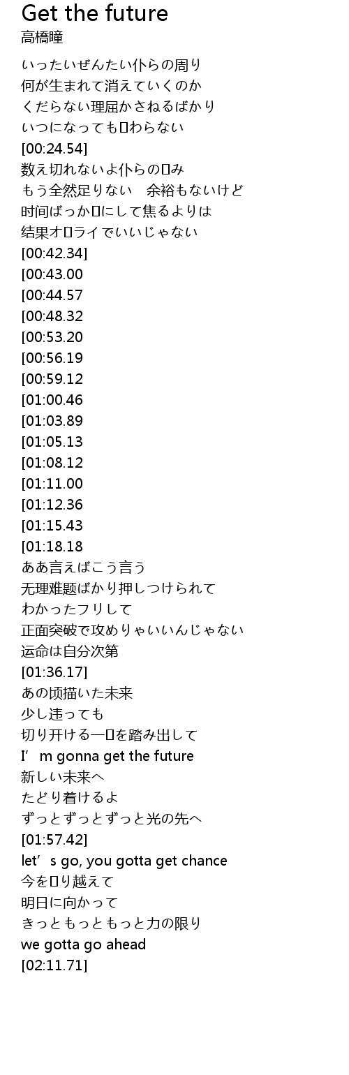 | [02:48.00][00:53.20] | I' m gonna get the future |