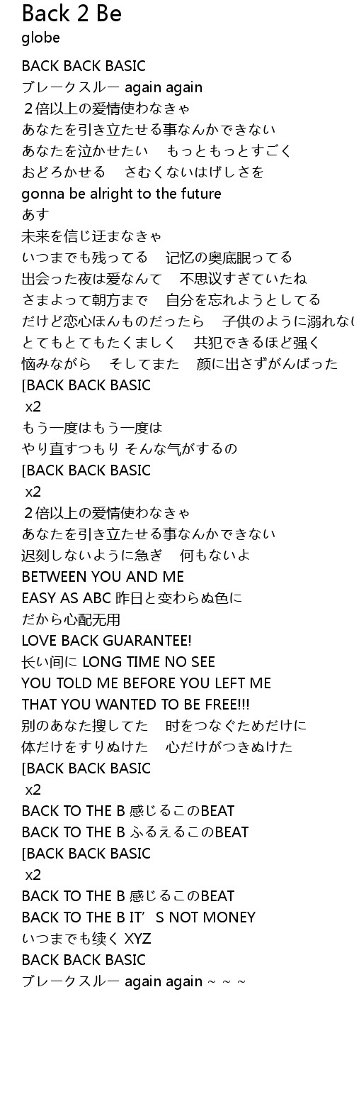 | 歌曲 | Back 2 Be |