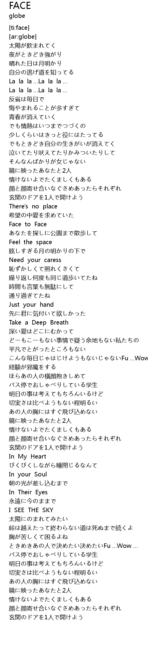 | [02:29.762] | Face to Face |