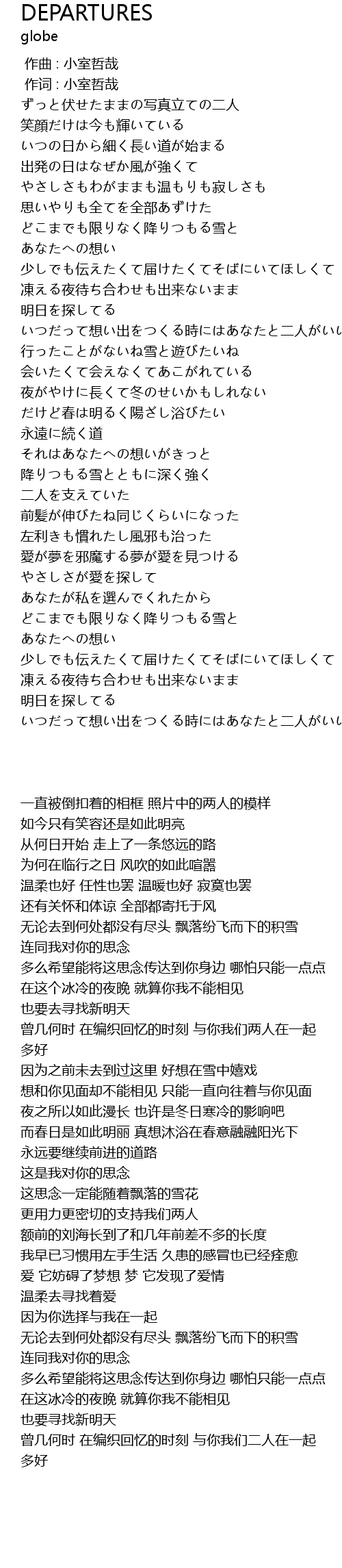 | [00:01.00] | 作词 : 小室哲哉 |