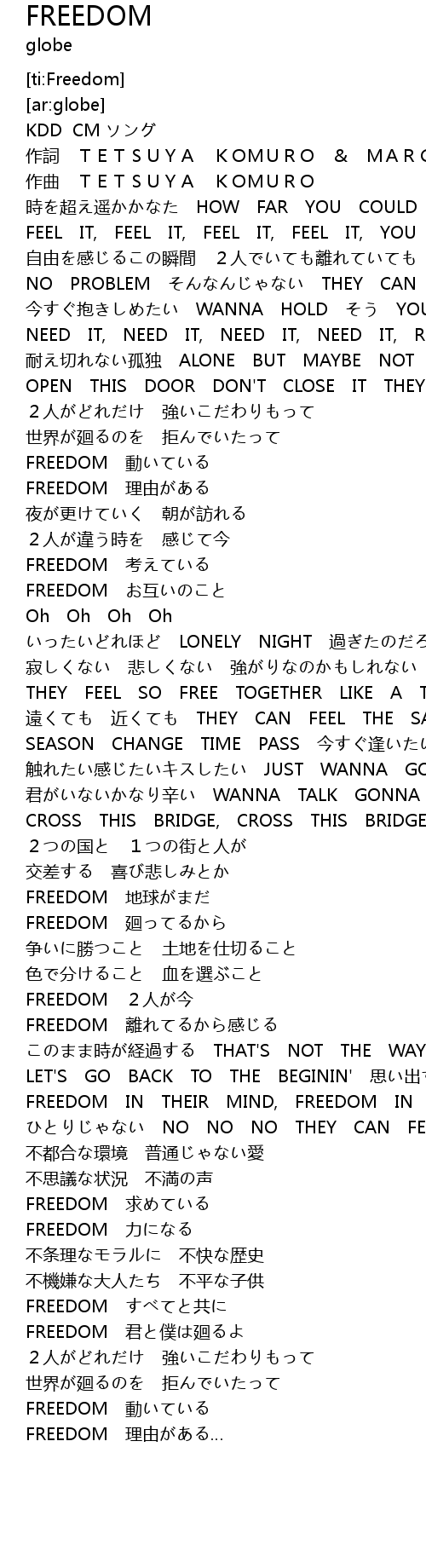 | [02:37.494] | FREEDOM 離れてるから感じる |