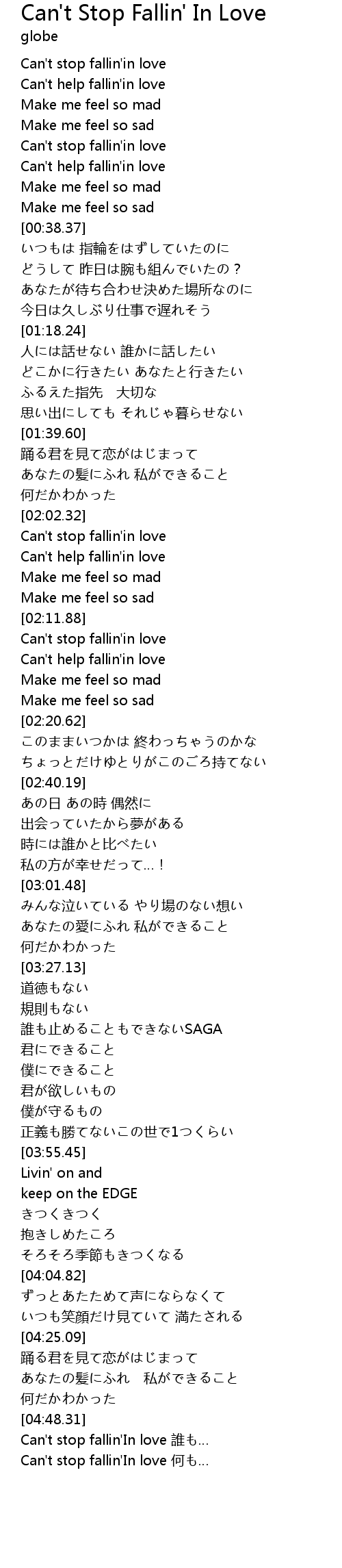 | [02:12.48] | Can't stop fallin'in love |