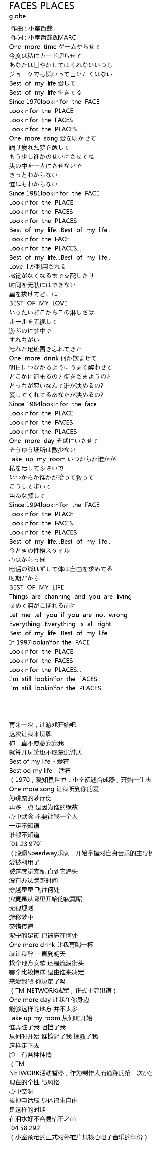 | 歌曲 | FACES PLACES |