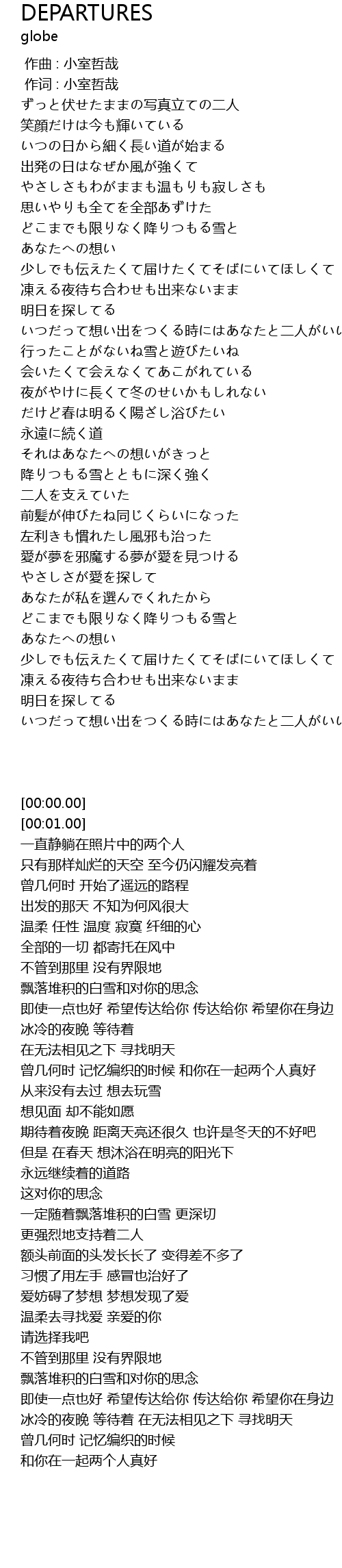 | [00:01.00] | 作词 : 小室哲哉 |