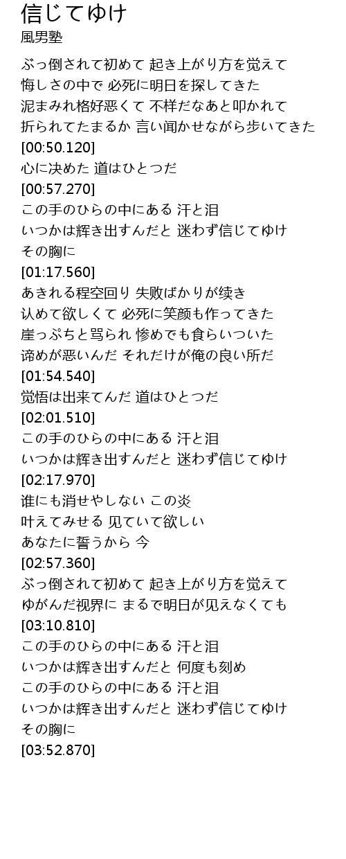 | [03:32.960] | この手のひらの中にある 汗と泪 |