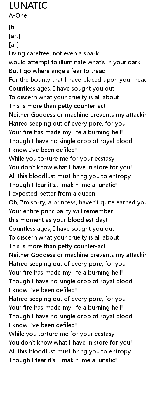 | [04:15.28] | Though I fear it's… makin' me a lunatic! |