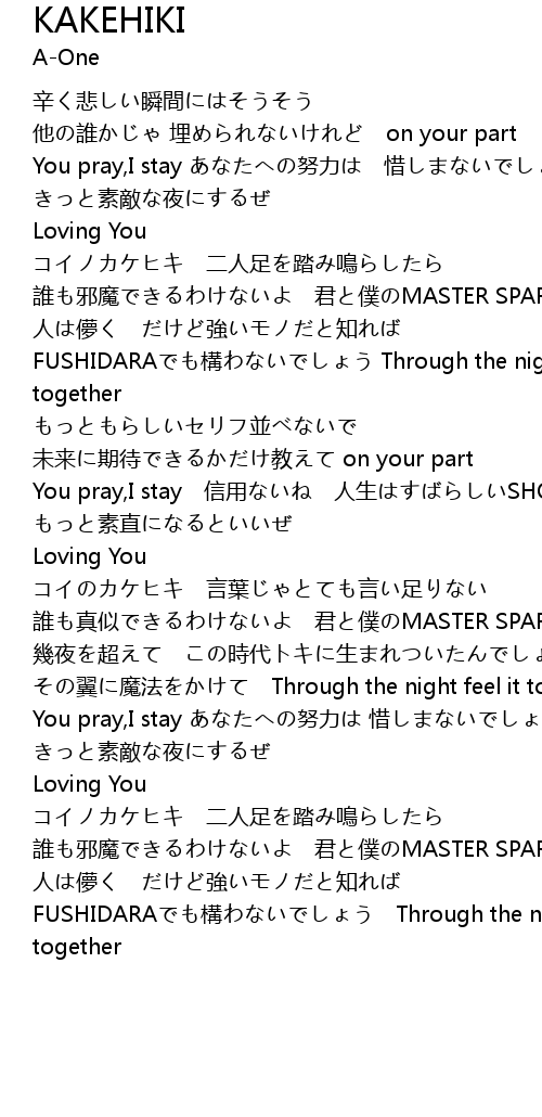 | [00:44.49] | 他の誰かじゃ 埋められないけれど on your part |