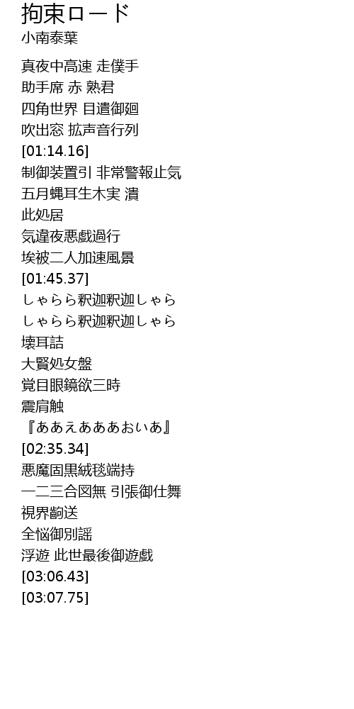 | [00:42.17] | 真夜中高速 走僕手 |