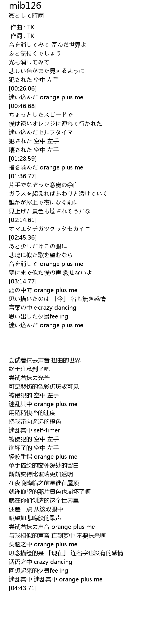 | [04:35.04] | 迷乱其中 迷乱其中 orange plus me |