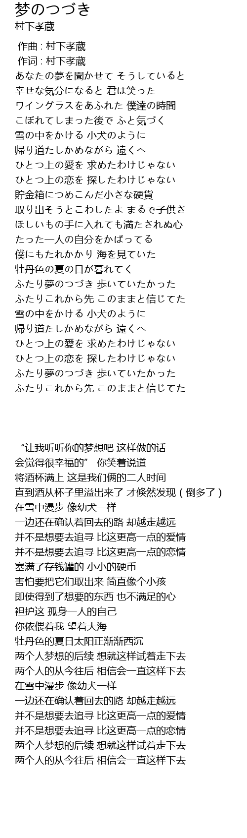| [02:50.53] | 两个人梦想的后续 想就这样试着走下去 |
