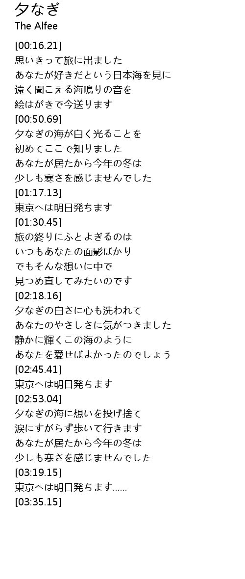 | [02:20.16] | 夕なぎの白さに心も洗われて |