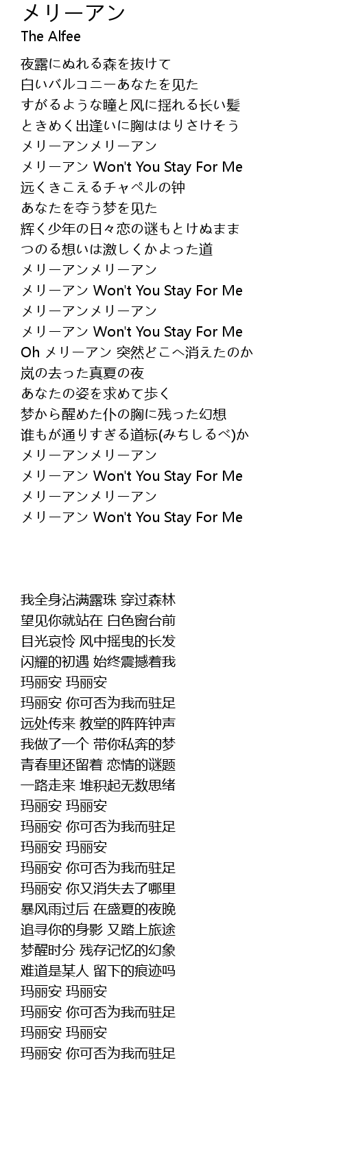 | [04:06.73] | 玛丽安 你可否为我而驻足 |