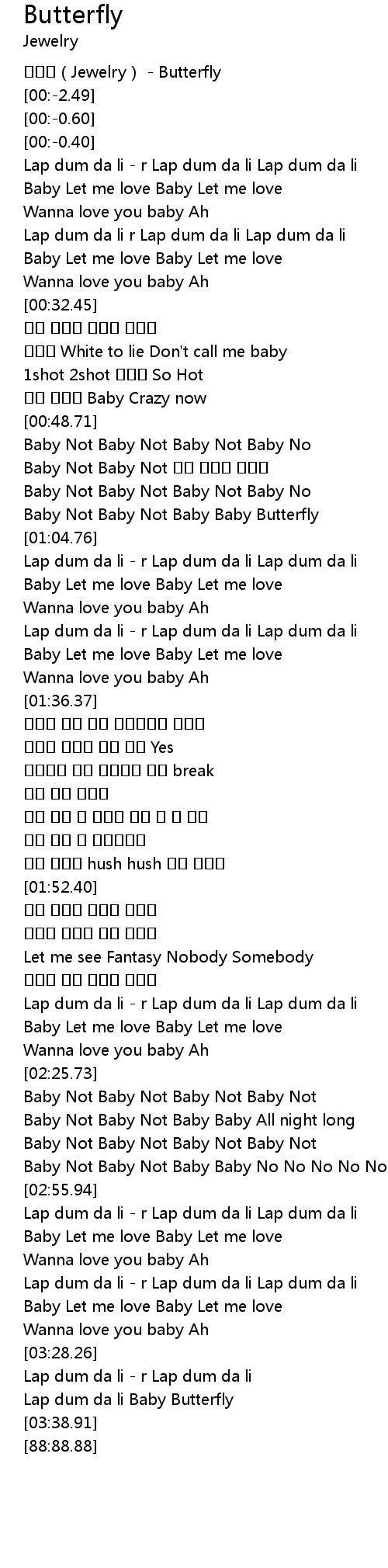 | [01:00.87] | Baby Not Baby Not Baby Baby Butterfly |