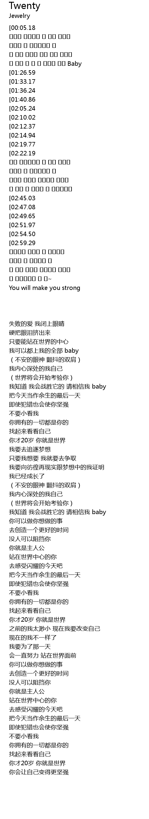 | [01:01.82][02:22.19][03:21.64] | You are Twenty, You re the world. |