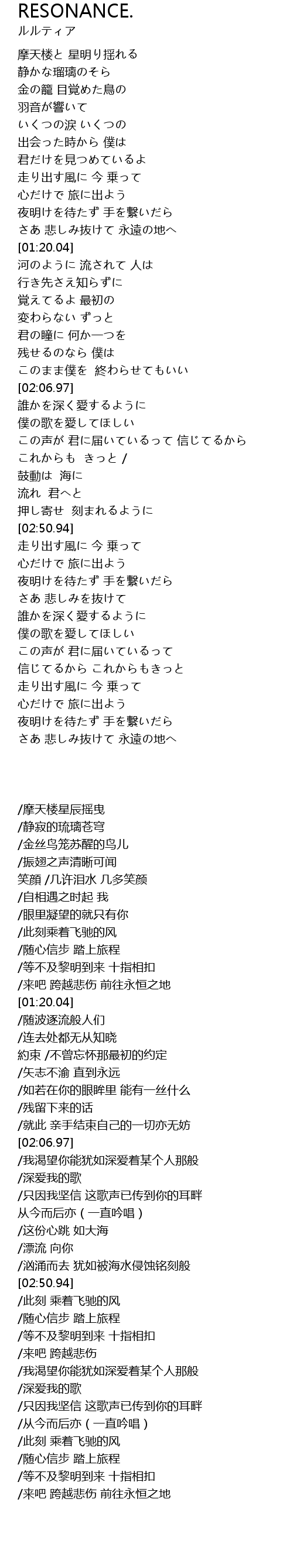 | [02:17.99] | /只因我坚信 这歌声已传到你的耳畔 |