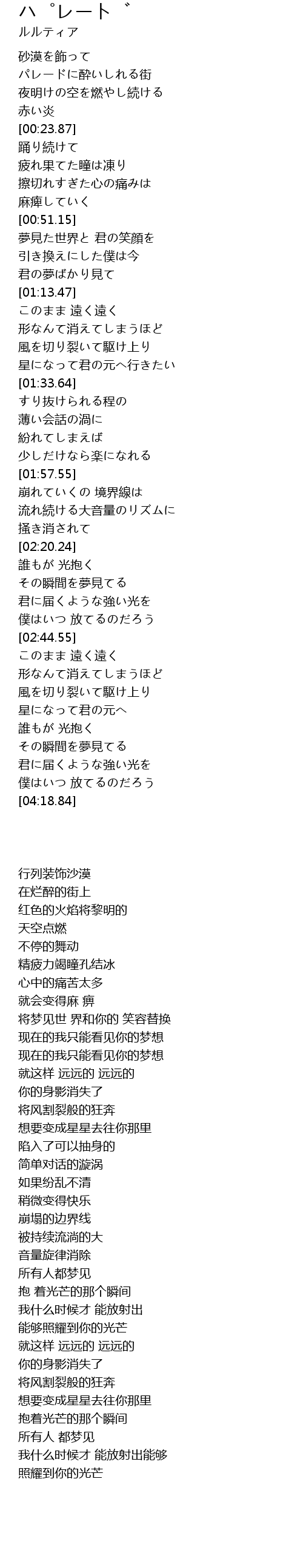 | [00:03.81] | パレードに酔いしれる街 |
