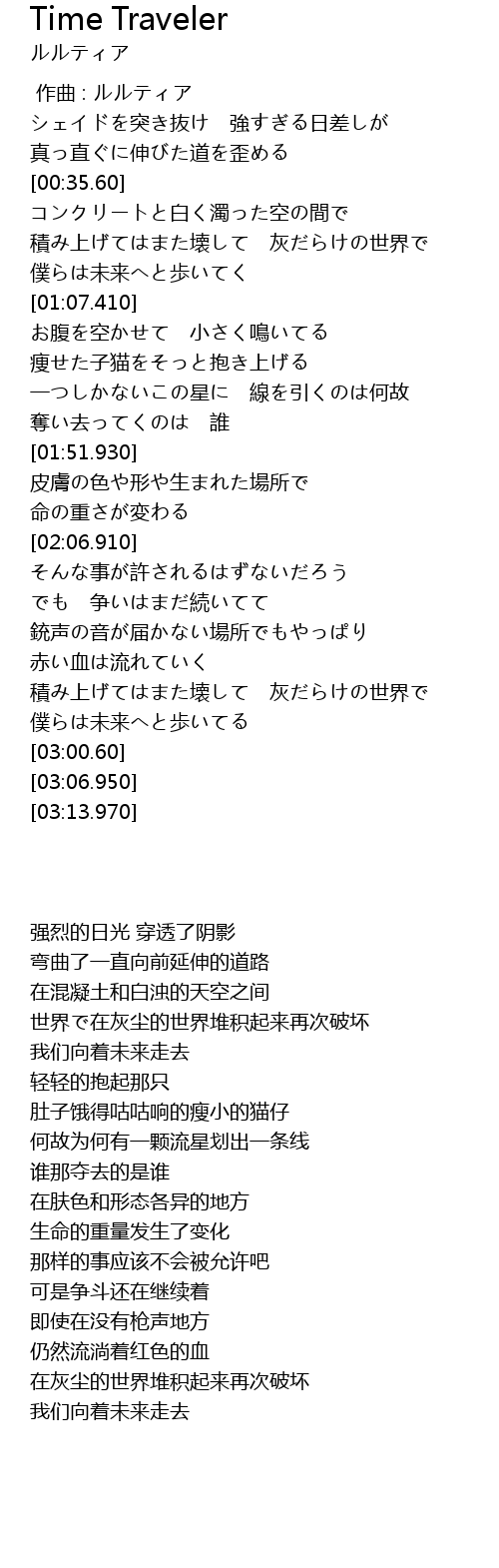 | [01:45.110] | 奪い去ってくのは 誰 |