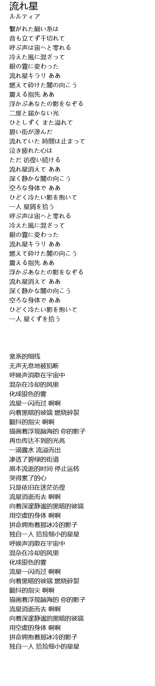 流れ星消えて ああ |