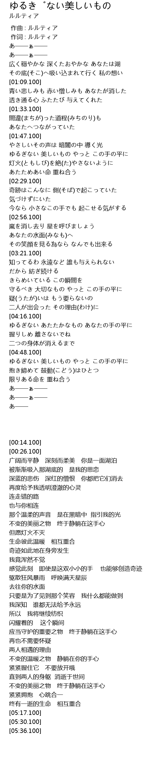 | [00:01.00] | 作词 : ルルティア |