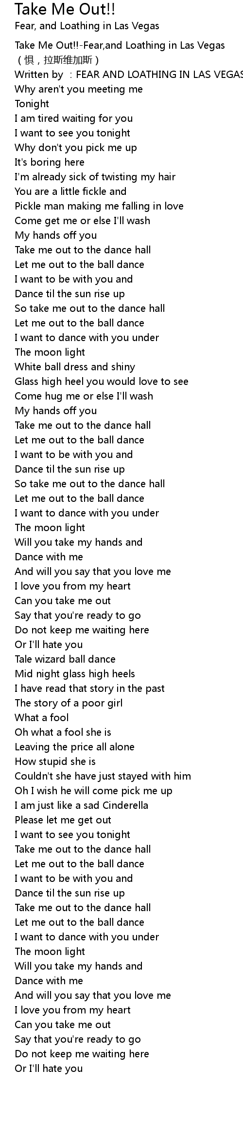 | [00:00.171] | Take Me Out!!-Fear,and Loathing in Las Vegas (惧,拉斯维加斯) |
