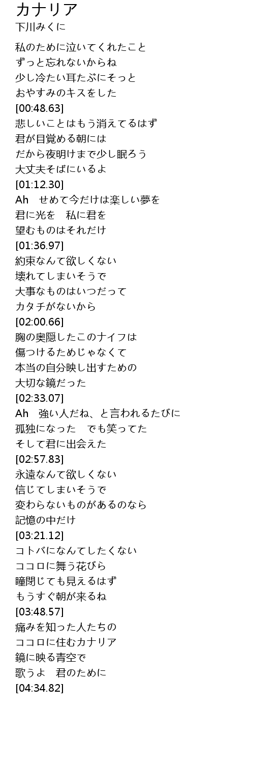 | [04:16.86] | ココロに住むカナリア |
