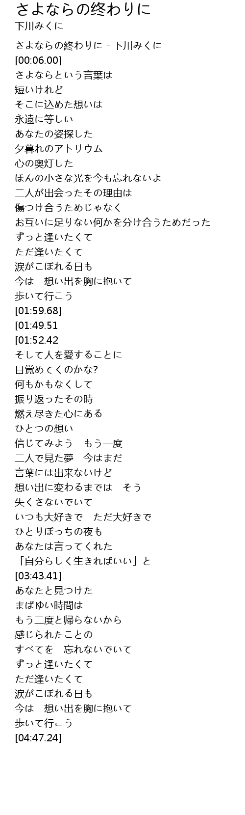 さよならの終わりに - 下川みくに |