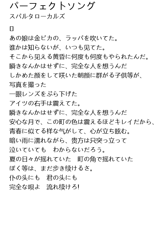| 歌曲 | パーフェクトソング |