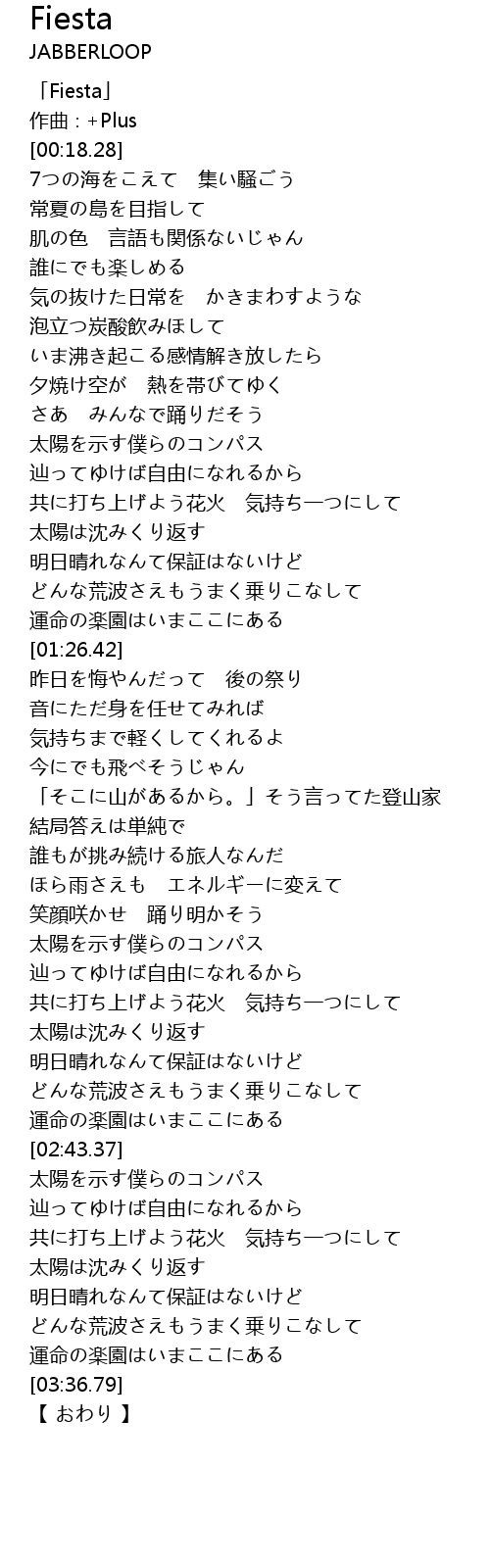 | [00:01.28] | 「Fiesta」 |