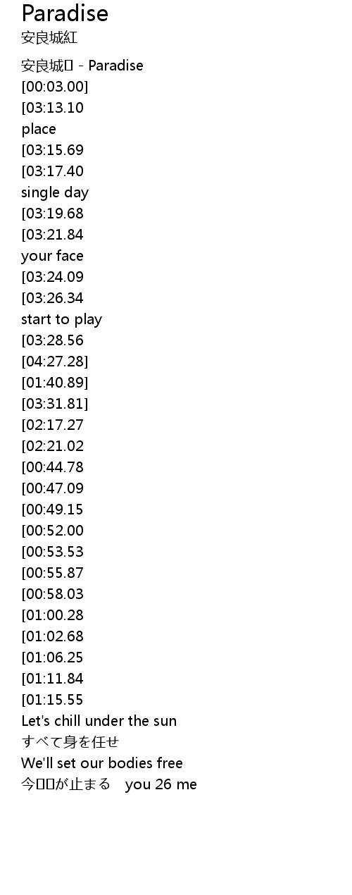| [00:02.00] | 安良城� - Paradise |