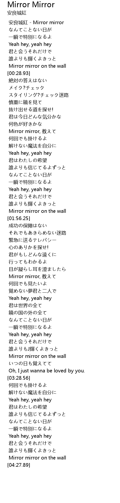 | [01:14.71] | Mirror mirror, 教えて |