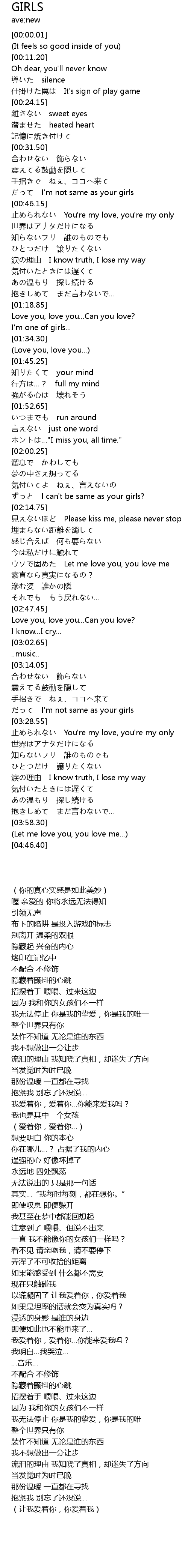 | [02:11.50] | ずっと I can't be same as your girls? |