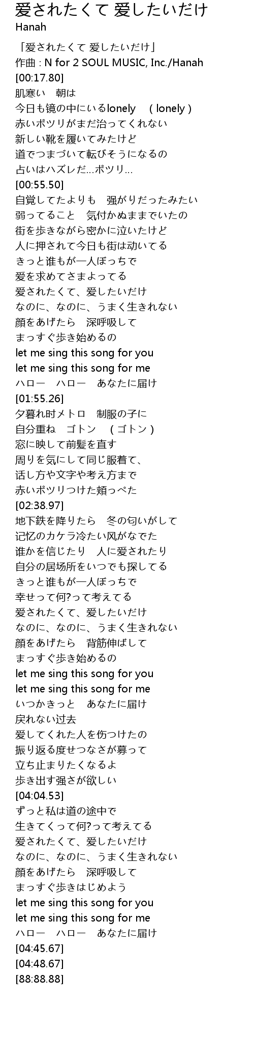 | [04:19.29] | なのに、なのに、うまく生きれない |