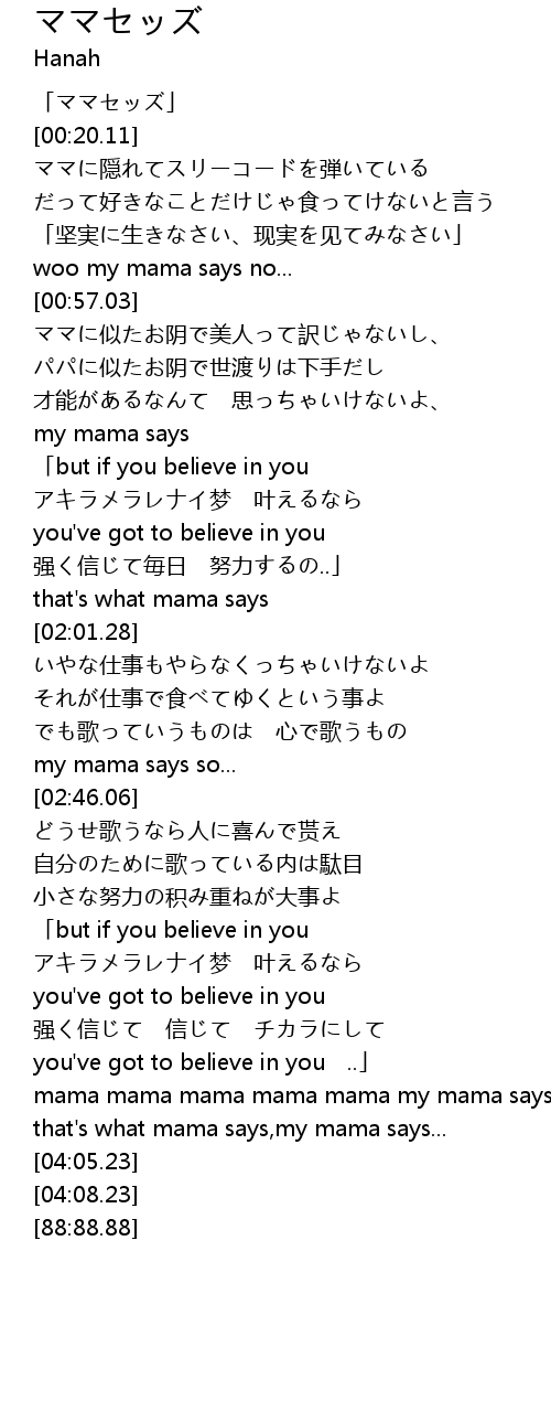| [03:54.18] | mama mama mama mama mama my mama says so |