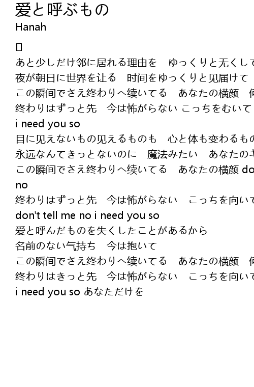 | 终わりはずっと先 今は怖がらない こっちを向いて | |